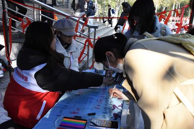 活动现场,考研学子们在旗帜上郑重写下心仪高校名称,既是对自我的激励,也承载着对未来的坚定期盼。最后,志愿者们将写满祝福的锦旗与展板悉心整理、妥善保管。这些承载着真挚祝福的实物将在后续展出,持续传递学院的温暖关怀,为考研学子注入坚持到底的勇气与信心。