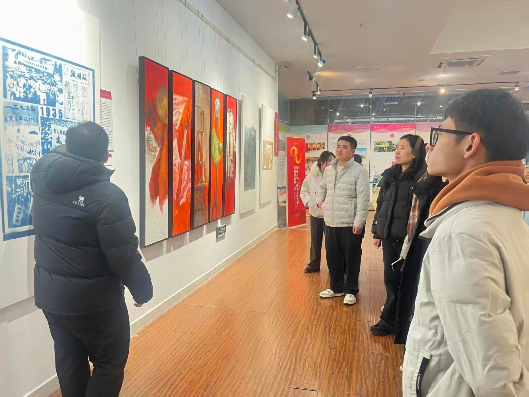 本次展览以“丹青红韵、铭史铸魂、爱国担当、赓续相传”为主题,通过“山河危局·历史回响”“精神永续·青春向上”“砥砺奋进·自信自强”三个篇章展开,集中展出了全校师生创作的中国画、油画、版画、书法篆刻等百余件精品力作。展览以艺术语言贯通历史记忆与时代画卷,既生动再现了“一二·九”运动中爱国青年奋起抗争、救亡图存的历史场景,也展现了新时代中国式现代化建设的生动实践,深刻诠释了“一二·九”精神在激励当代青年坚定信仰、担当使命方面的时代价值。
