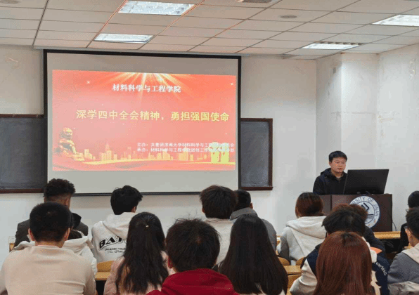 团课伊始,姜佳乐以“解码中国之治 勇担青春使命”为题点明团课核心,强调中国特色社会主义制度优势与青年使命担当的深层关联,号召广大青年以制度自信为魂、以实干拼搏为刃,在推进国家治理现代化的征程中校准青春方向、践行时代责任,进一步夯实了青年团员认同制度、报效国家的思想根基。随后,团课通过课件展示、数据解读、案例分析三个环节系统铺陈,深入阐释四中全会关于坚持和完善中国特色社会主义制度的重大意义与决策部署,生动剖析中国特色社会主义制度和国家治理体系的显著优势,结合青年成长实际引导团员将个人理想融入党和国家事业发展大局,让在场团员深刻领会到“中国之治”背后的制度密码,其本质是中国共产党领导的政治优势与中国特色社会主义制度的实践伟力。互动分享环节,青年团员围绕“我为强国建设做什么”这一主题,结合自身专业学习、社会实践和未来规划交流感悟、分享思考。最后,团课以现场交流研讨为载体,同学们踊跃发言、各抒灼见,思想的碰撞与责任的共鸣,让团课氛围既热烈浓厚,又兼具理论深度与实践思考,姜佳乐还在总结中寄语全体团员青年以此次学习为契机领会全会精神,将学习成果转化为奋进动力,为民族复兴贡献青春力量。