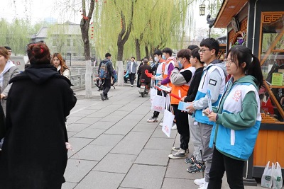 活动中,多名志愿者身着蓝色或红色的马甲,他们口号响亮,笑容亲切,使原本美丽的百花洲增添了一道靓丽的风景线。志愿者们看到了许许多多善良的人,遇到了很多记忆深刻的事,这里的每一个微笑,每一份爱心,都让这个春天更加温暖,让美丽的景区更加迷人。义卖结束后,慧爱负责人告诉志愿者,周六的捐赠数额达到了历史最高,突破了一千元,义卖活动取得了圆满成功。
