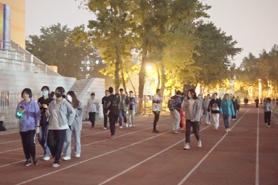 活动开始前,活动负责人建好QQ群并做好了前期准备工作。19:30活动正式开始,全体参与者准时于北苑操场主席台下集合领取荧光手环,并在主席台下合影留念。19:40参与者们以北苑操场为起点,经育才路、绿泉路、紫荆路、大学路,绕校园中心慢跑,并用运动软件记录下运动轨迹,总路程大约2.2公里,夜跑途中,参与者们相互打气,团结互助,负责人时刻留意,坚决不让任何一位同学掉队,拍摄者也时刻用相机记录下他们奔跑的身影和跑步途中的美好瞬间。同学们在20:20前跑回操场后自行离开,并于当天晚上22:30前在群相册上传了本次活动的运动轨迹截图,至此,本次活动圆满结束。
