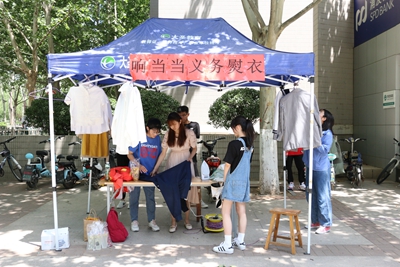 为更好地服务同学,营造和谐互助的校园氛围,太阳集团城娱8722“青春无悔”青年志愿者协会于5月29日在八食广场举办了“小熨斗,大温暖”志愿服务活动。