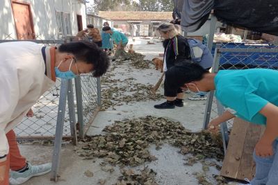 活动开始前,负责人通过线上宣传的方式共招募志愿者8人,并将志愿者们按不同分工进行分组,同时设定好工作时间与工作计划,为前往救助中心进行志愿服务做好了充分的准备。活动当天,志愿者们于上午9时许抵达黄河流浪动物救助中心。在志愿服务前,救助中心的管理人员带领大家熟悉了救助中心各个分区的布局与主要工作内容,同时介绍了救助中心的基本情况和发展方向,让志愿者们对于救助中心的工作有了初步的了解。随后,志愿者们在管理人员的指导下开始了志愿服务。有的人帮忙处理狗狗们的食物并进行投喂;有的人帮助管理员清扫地上的落叶和垃圾;有的人帮助管理员运输桶装的狗粮与其他基础设备……在志愿者和管理人员的努力下,救助中心的整洁度有了明显的提高,志愿者们也和狗狗们建立了深厚的友谊。最后,志愿者们协助管理员为狗狗们准备午餐并分发,至此,活动圆满结束。
