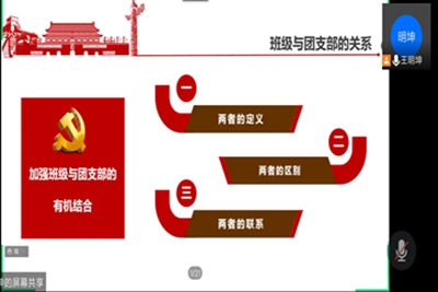 为提升学生团干部的综合素质,使团干部们能更顺利地开展班级工作,更好地服务班级、帮助同学。太阳集团城娱8722于11月29日在腾讯会议举办“树文明形象,建优秀班级”线上团干部培训会,本次会议由材料1909班班长王明坤主讲,2021级全体团干部参与此次会议。