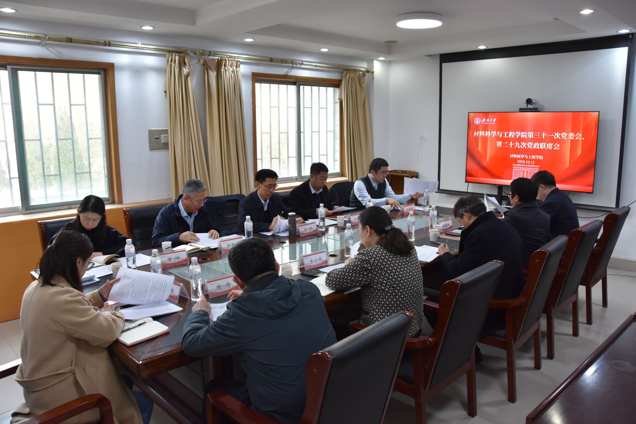 党委理论学习中心组学习结束后召开了党委会和党政联席会。党委会首先进行了“第一议题”学习,会议对学院2025 年工作总结及2026年工作要点进行了讨论,党委书记孙卫星梳理总结了2025 年全面从严治党工作成效,提出2026年学院党委要推动基层党建从“全面过硬”向“卓越示范”升级,形成“党建引领精准化、融合深度化、品牌特色化、成效显著化”的发展格局;推动“一融双高”从“见成效”向“创标杆”跨越,为学校“十五五”时期发展筑牢组织根基。院长赵德刚汇报了学院2025年工作总结和2026年工作要点,提出学院要聚焦学科高峰建设、科研平台升级、人才引育并举等核心任务,重点推进新能源材料、先进功能材料等特色方向发展。与会人员进行了讨论并达成一致意见。