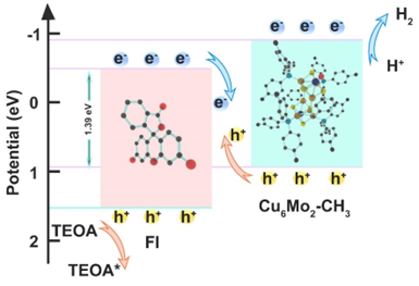 该项工作为基于原子级精确的双金属Mo−S−Cu簇的高性能产氢光催化剂的设计开辟了一条全新的技术途径,拓展了非贵金属团簇化合物在光催化领域中的应用,为未来可商业化产氢催化剂的发展奠定了基础。